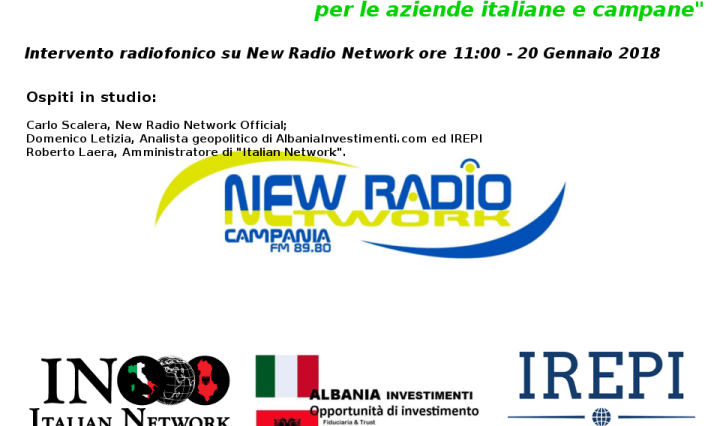 Approfondimento Radiofonico di New Radio Network: “L’Albania e le opportunità d’investimento e d’impresa per le aziende italiane e campane”